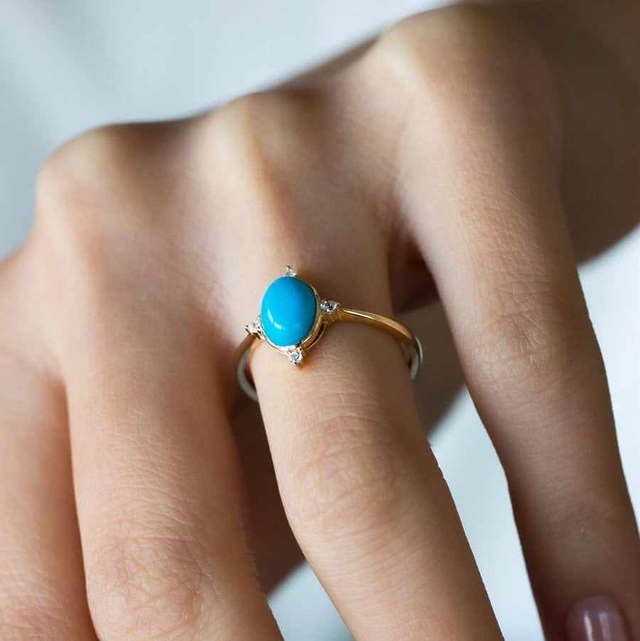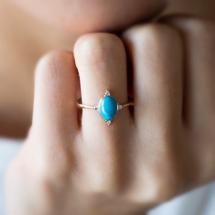 Firuze ve Küçük Beyaz Taşlı Yüzük