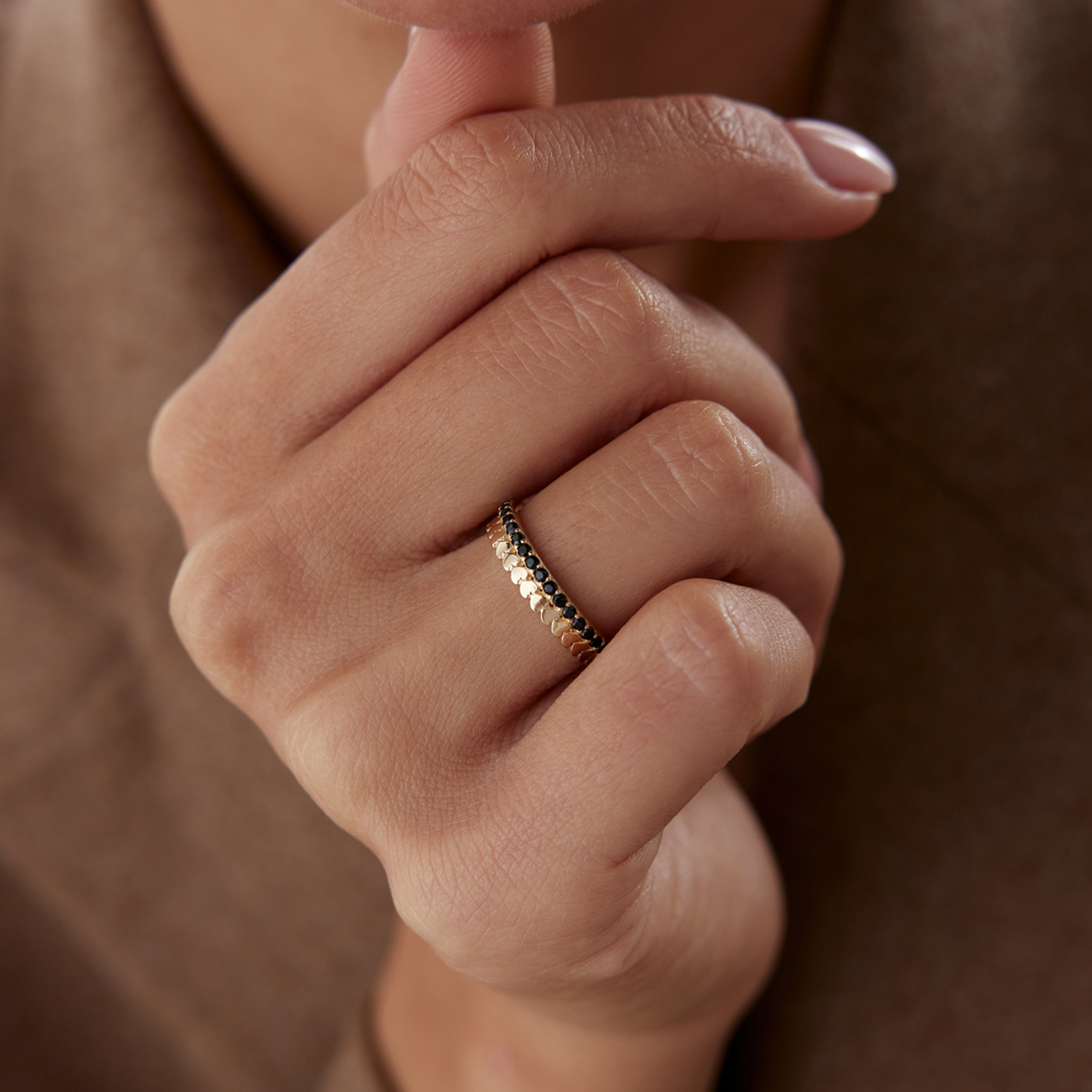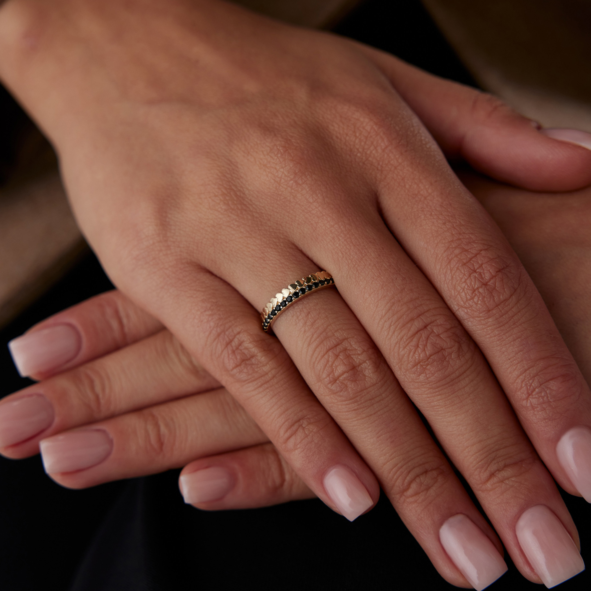 Sıralı Kalp Siyah Taşlı Yüzük